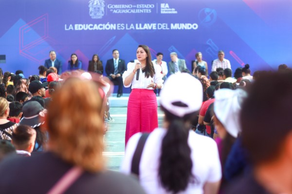 La gobernadora de Aguascalientes, Tere Jiménez, visitó la Escuela Secundaria Técnica No. 34 Frida Kahlo Calderón, ubicada en la colonia Pintores Mexicanos en el oriente de la capital, donde hizo un llamado a las y los estudiantes a seguir preparándose para construir en conjunto un mejor Aguascalientes.