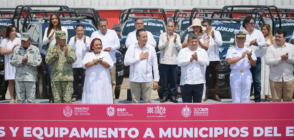 Veracruz, Ver.- El Gobierno estatal dotó de 88 patrullas equipadas, además de chalecos balísticos, a 31 municipios de todas las regiones en el marco de la estrategia de protección ciudadana y con recursos del Fondo para el Fortalecimiento de las Instituciones de Seguridad Pública, en una inversión bipartita que supera los 130 millones de pesos.