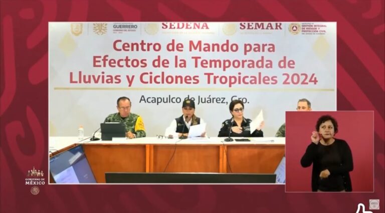 Junto a la coordinadora nacional de Protección Civil, Laura Velázquez Alzúa y desde el Centro de Mando para Efectos de la Temporada de Lluvias y Ciclones Tropicales 2024, se dio a conocer que, para la atención a la situación, se activaron el Plan DNIII-E, Plan Marina y Plan Guardia Nacional, además de que se mantiene un despliegue operativo interinstitucional de una fuerza de tarea integrada por 18 mil 718 elementos de respuesta, 2 mil 181 vehículos de las diferentes corporaciones y cuatro helicópteros, además de la habilitación de 299 refugios temporales -170 en Costa Chica, 39 en Acapulco y 90 en Costa Grande-.