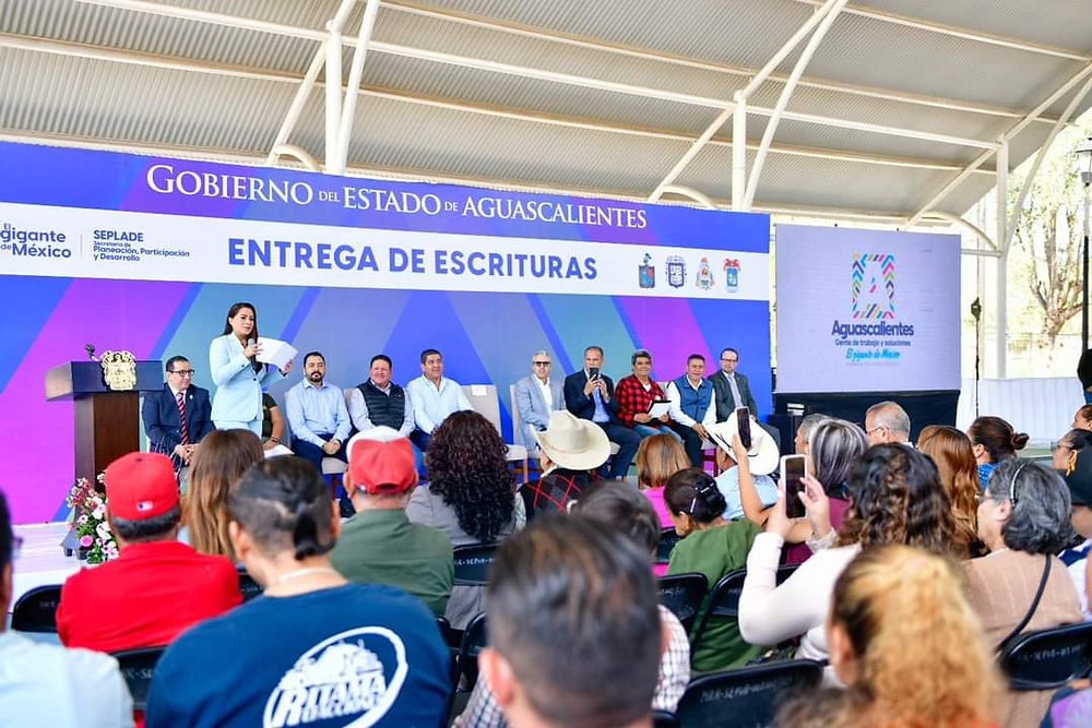 La gobernadora de Aguascalientes, Tere Jiménez, entregó más de mil escrituras y la autorización para la regularización de seis asentamientos humanos irregulares en los municipios de Rincón de Romos, Jesús María, Asientos y Tepezalá, con lo que se brinda certeza jurídica en la propiedad de sus viviendas a cientos de familias que esperaron más de 30 años para lograr este objetivo.