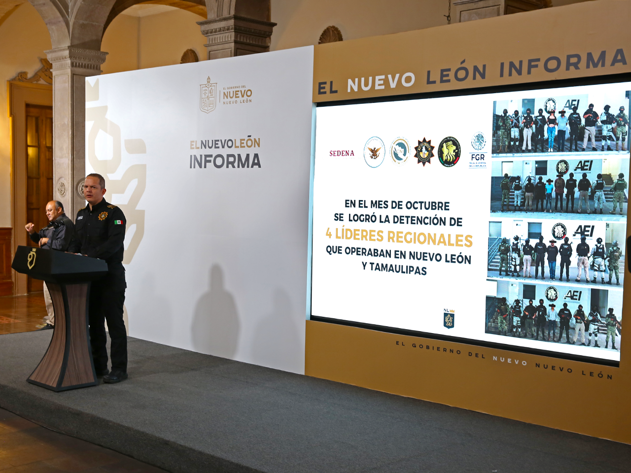 Asimismo, destacó la coordinación que se tiene con el Gobierno federal y solamente en el mes de octubre Fuerza Civil detuvo a cuatro líderes regionales que operaban en Nuevo León y Tamaulipas.