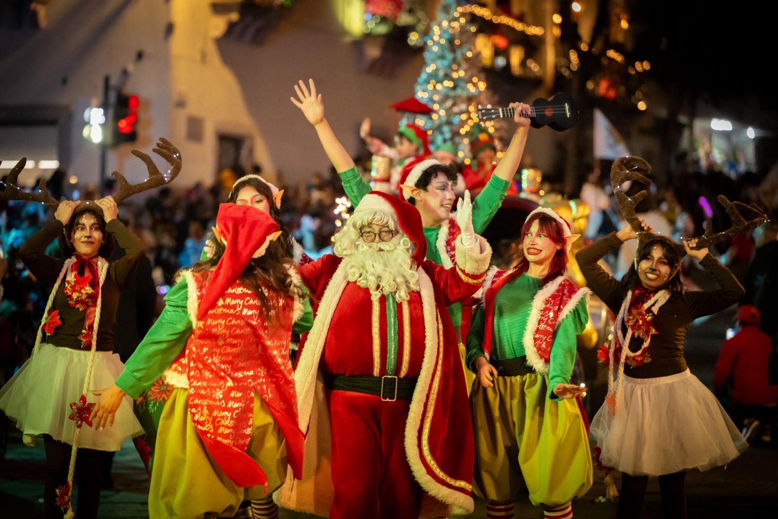 La Máquina 30-30 fue el punto de partida de 70 contingentes de ángeles, la Corte Real de la Feria Nacional de Zacatecas (Fenaza), la Banda Sinfónica de Guadalupe, la Banda de los Venados (de San Martín Mexmelucan, Puebla), renos, pastorcillos, duendes, elfos, soldados de plomo, marionetas gigantes, los ayudantes de Santa y el Grinch que quería robarse la Navidad.